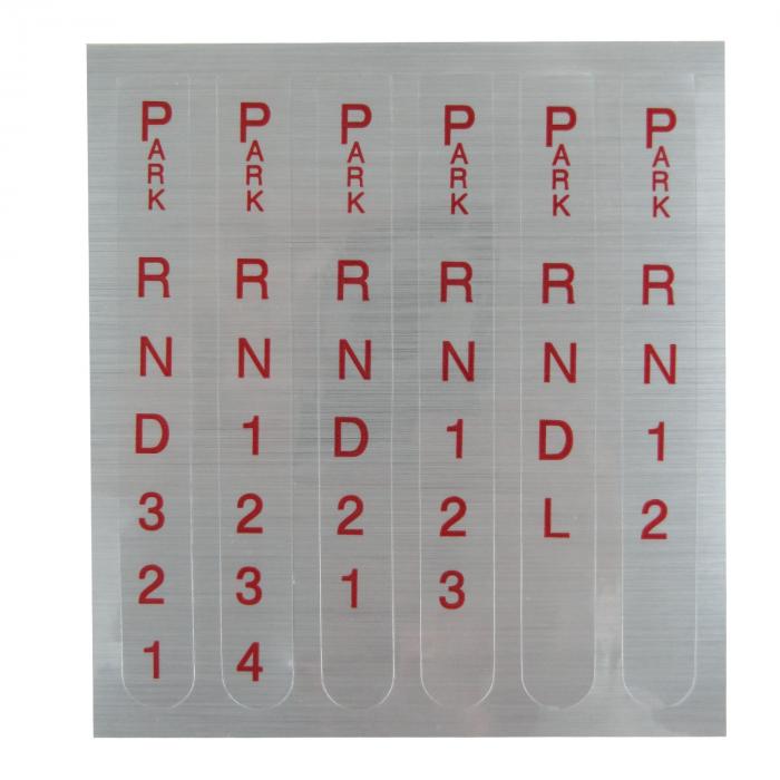 Replacement indicator decal with a reverse or standard shift pattern for B&M Pro Ratchet shifter part numbers 80840 and 80842.