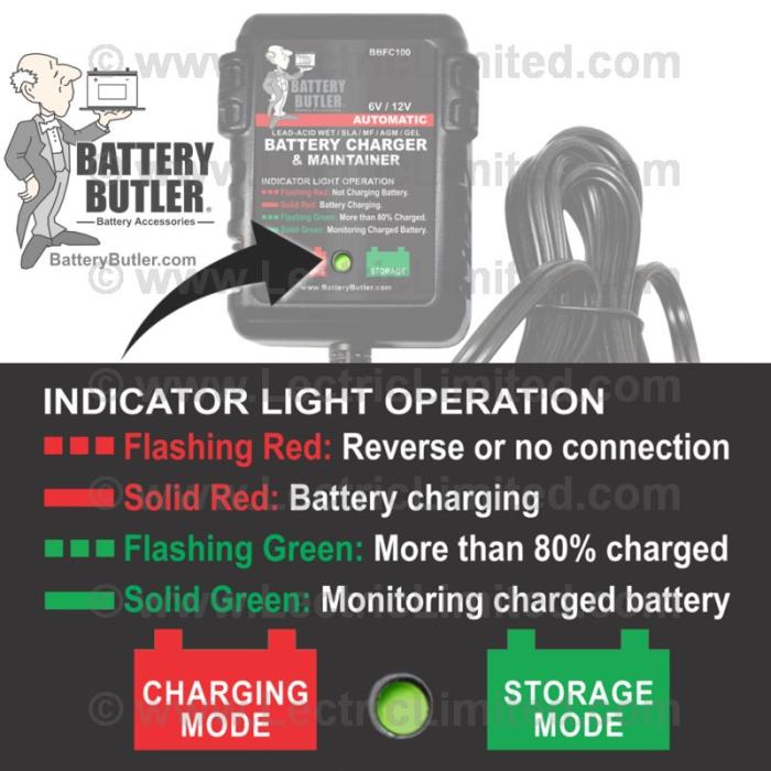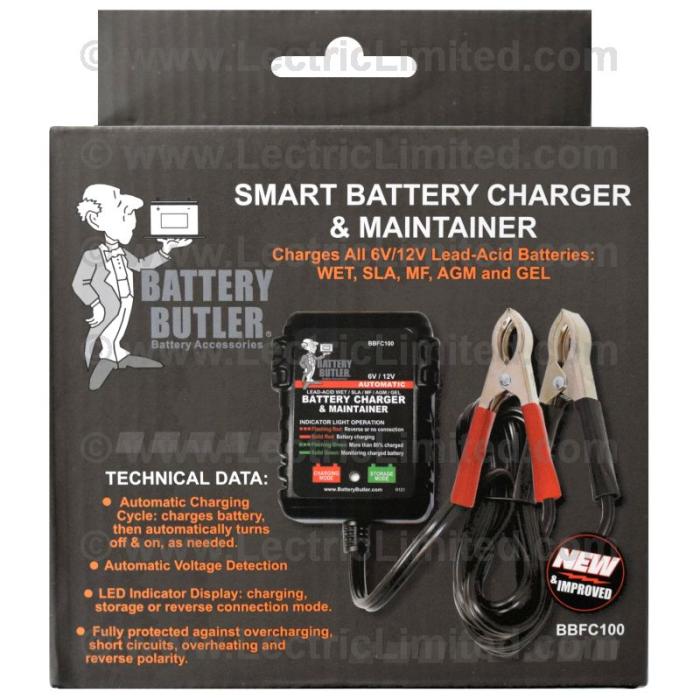 Lectric Limited 1935-2012 American Motors / Chrysler / DeSoto / Dodge / Plymouth / Ford / Mercury / Buick / Cadillac / Chevrolet / GMC / Oldsmobile / Pontiac / Jeep / Studebaker / Volkswagen Battery Butler – Battery Storage Charger: 6/12 Volt BBFC100