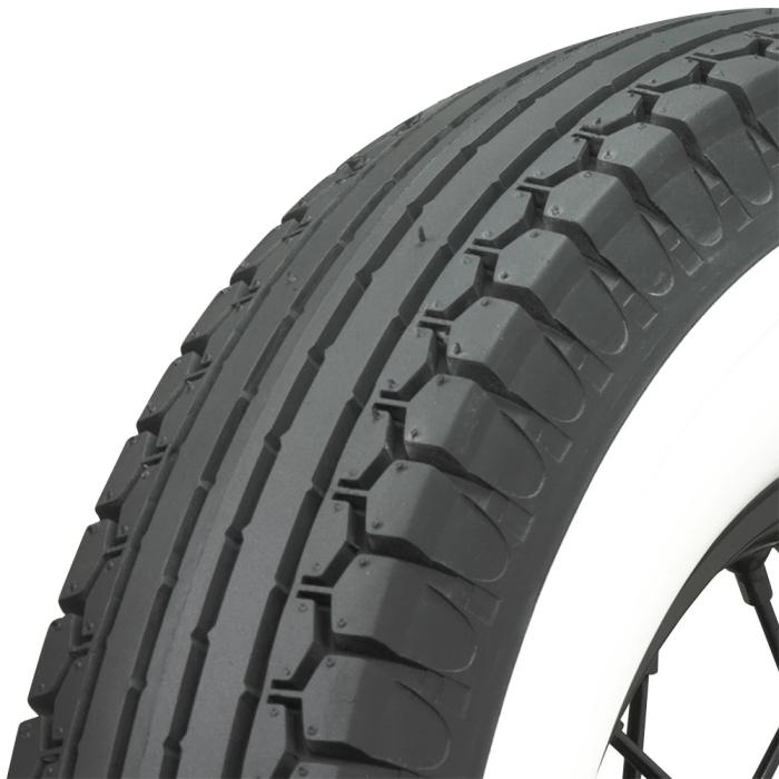 This product features a genuine wide whitewall sidewall style. This means that the bright white rubber is added directly to the tire sidewall during initial construction of the carcass, resulting in a truly integrated, high-quality product after vulcanization. Wide whitewall tires were a very popular choice from the 1930's through the end of the 1950's, and were eventually phased out of mainstream production by 1962. Originally, wide whitewall tires featured a bias ply construction, Coker Tire offers these tires in both original style bias ply and modern radial construction.
