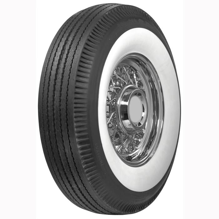 This product features a genuine wide whitewall sidewall style. This means that the bright white rubber is added directly to the tire sidewall during initial construction of the carcass, resulting in a truly integrated, high-quality product after vulcanization. Wide whitewall tires were a very popular choice from the 1930's through the end of the 1950's, and were eventually phased out of mainstream production by 1962. Originally, wide whitewall tires featured a bias ply construction, Coker Tire offers these tires in both original style bias ply and modern radial construction.