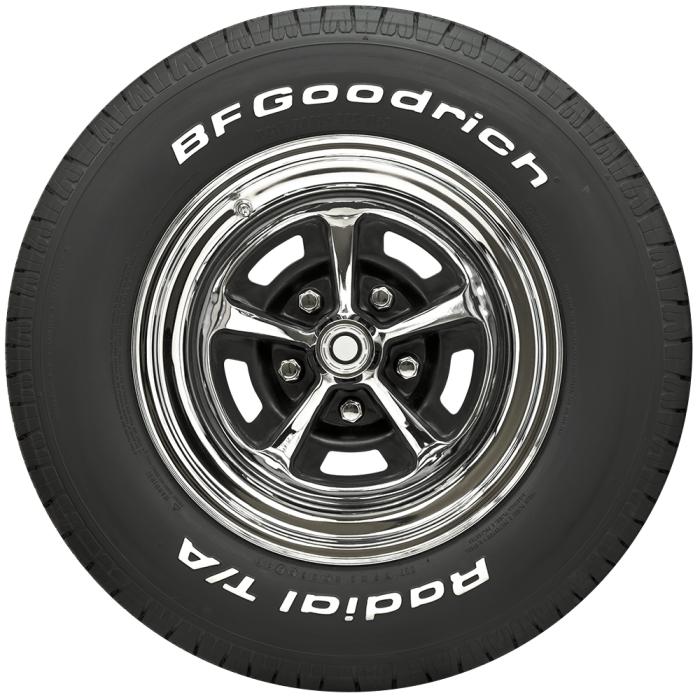 BF Goodrich Radial TA | BF Goodrich Radial T/A BF Goodrich Radial T/A tires are perfect for muscle cars and classics that call for a raised white letter sidewall. With the legendary V-Bloc tread design and S (112 MPH) speed rating, they are built to perform. DOT and ECE (European Union) approved. With 40 years of heritage, the BF Goodrich Radial TA product line earns the title of the ultimate muscle car tire. We have thousands of Radial T/A tires on hand, so you can get your tires quick, and get your muscle car back on the road, where it belongs! Please note that dimensions listed tread width, section width and overall diameter are non-scientific and based on an inflated tire, mounted on a wheel. Dimensions may vary due to rim width and inflation pressure.