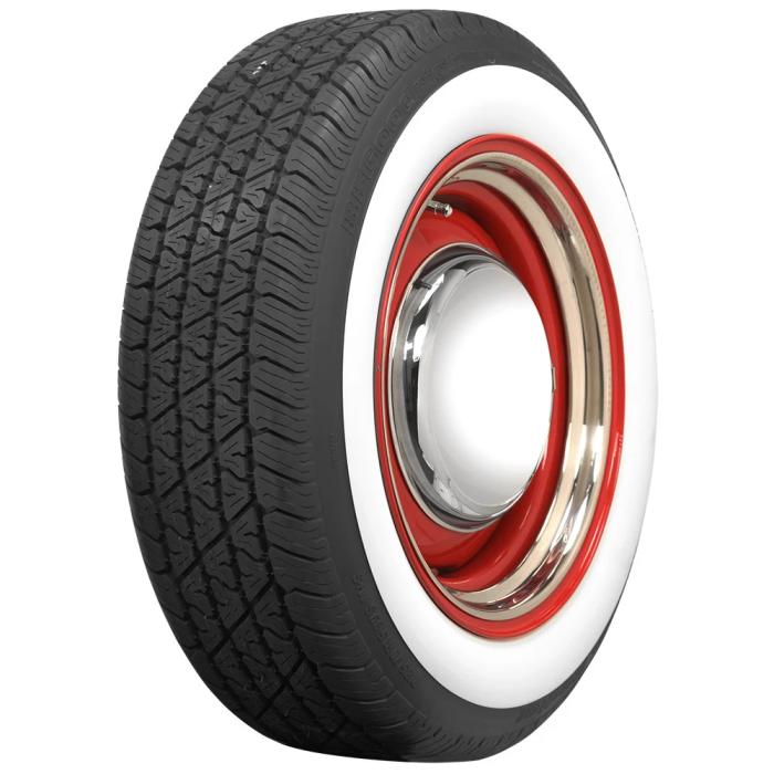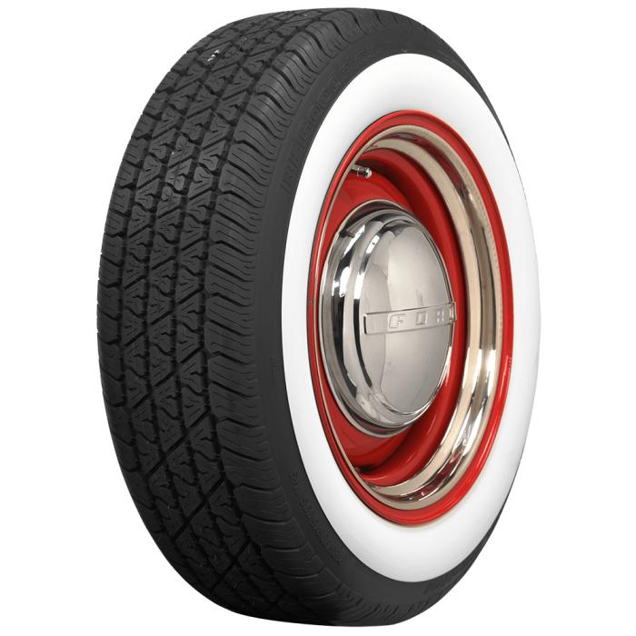 This product features a genuine wide whitewall sidewall style. This means that the bright white rubber is added directly to the tire sidewall during initial construction of the carcass, resulting in a truly integrated, high-quality product after vulcanization. Wide whitewall tires were a very popular choice from the 1930's through the end of the 1950's, and were eventually phased out of mainstream production by 1962. Originally, wide whitewall tires featured a bias ply construction, Coker Tire offers these tires in both original style bias ply and modern radial construction.