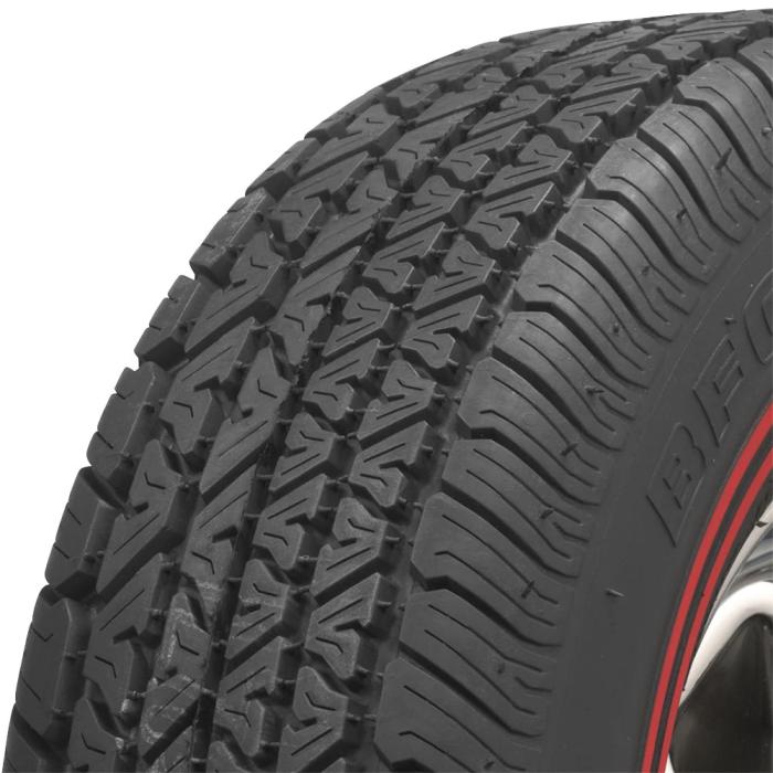 BFGoodrich Redline Radial tires are one of Coker Tire's most popular products. The redline tire is synonymous with the American muscle car. While mostly bias ply tires were widely available in the sixties, these modern radial BFGoodrich Redline tires offer fantastic performance and ride quality. A popular tire choice for Mustangs, Camaros and other popular muscle and pony car applications. All BFGoodrich Silvertown Radials feature an all season tread design with an S-speed rating. These tires are DOT and ECE approved, and they are backed by Coker Tire Company's Life of the Tread Warranty.