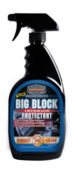 Harmful UV rays, the sun’s heat and even intense cold can ruin your interior, making it dry out, fade and crack. Big Block Interior Protectant puts a stop to that – in no time! Its powerful UV blockers keep your interior looking like new. Specially formulated Enthusiast Grade® quality works great on leather, vinyl and plastic.