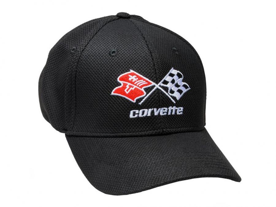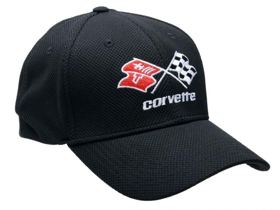 These black moisture wicking caps are embroidered with the C2 / C3 Crossflag Corvette logo to show your love. One size fits all.