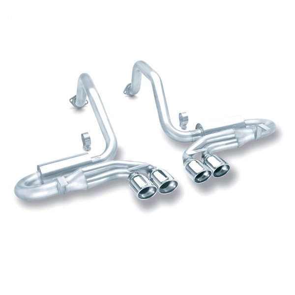 BORLA® offers a variety of options for the C5, C6 and Z06. Choose from several tip styles and muffler designs. Cat-Backs™ and Rear Sections are available with either the highly popular “S-Type” muffler or the “Touring” muffler. The “S-Type” is a smaller, round muffler with a center-in/center-out configuration giving a more aggressive sound and higher flow. For those who prefer it on the milder side, we have the “Touring” muffler -- a larger case producing less aggressive sound. Some come with an assortment of tip designs.