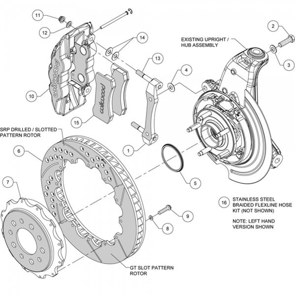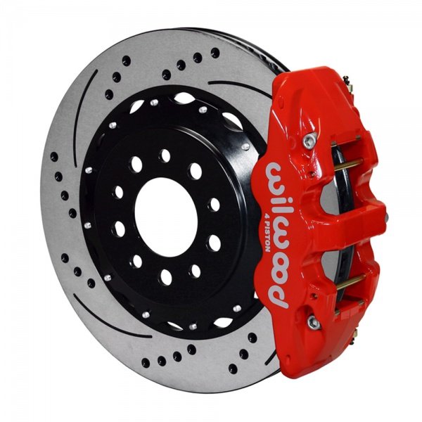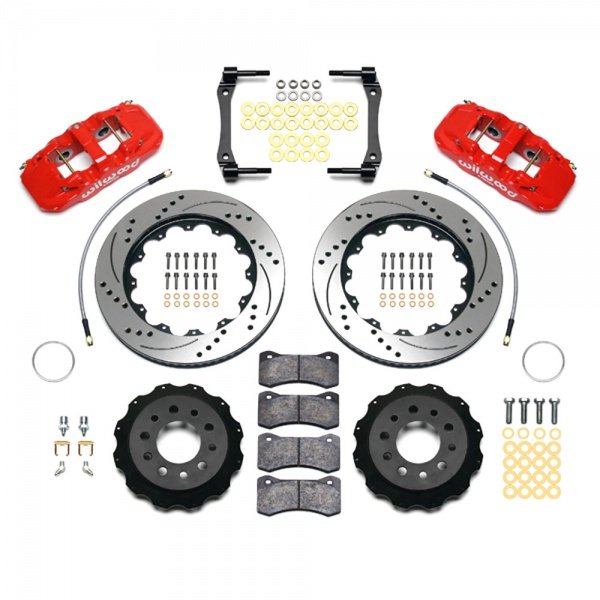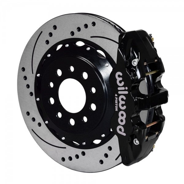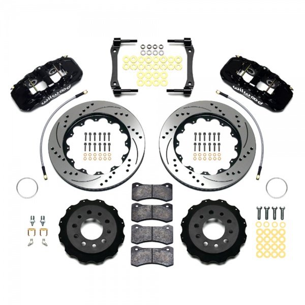 These AERO4 calipers from Wilwood were designed for the specific purpose of providing big capacity braking with large diameter rotors for the Corvette. They provide pick up where the factory brakes left off by providing big brake performance for show and dual purpose street and track vehicles. This kit is fully compatible with OE parking brake, master cylinder output and ABS function. Directional staggered vane 14" drilled & slotted rotors provide maximum cooling for sustained high heat durability.