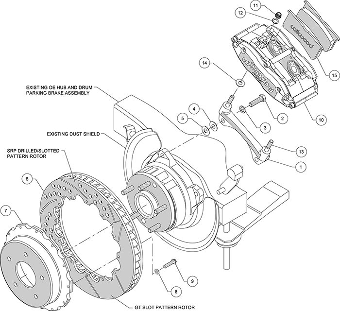 Forged Narrow Superlite 4R four piston calipers are combined with BP-10 compound pads and 13”-14” rotors in this group of big brake kits for custom high performance street and show machines. This group of specialized kits for cars, trucks, and SUV’s retain full use of the OE parking brake, master cylinder output, and ABS where used. FNSL4R rear kits provide complimentary style and performance with 13” and larger front brake upgrades in conjunction with wheel, tire, and suspension upgrades. Optional caliper finishes and rotor designs enable the builder to match style and performance on all applications.
