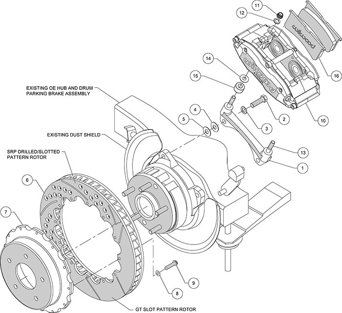 Forged Narrow Superlite 4R four piston calipers are combined with BP-10 compound pads and 13”-14” rotors in this group of big brake kits for custom high performance street and show machines. This group of specialized kits for cars, trucks, and SUV’s retain full use of the OE parking brake, master cylinder output, and ABS where used. FNSL4R rear kits provide complimentary style and performance with 13” and larger front brake upgrades in conjunction with wheel, tire, and suspension upgrades. Optional caliper finishes and rotor designs enable the builder to match style and performance on all applications.