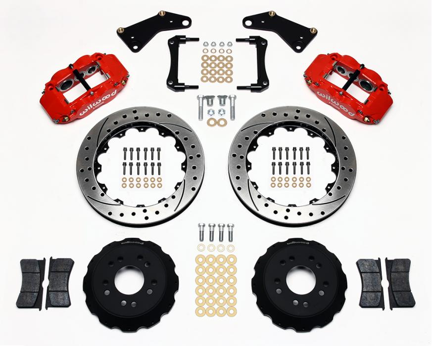 KIT,FRONT,VETTE,65-82,FNSL6R,13.00 ROTOR DRILLED,RED; RTR:13.06-IN DIA, SRP DRILLED ROTOR, DRILLED & SLOTTED; CLPR:FORGED NARROW SUPERLITE 6R, 6-PISTON, RED POWDER COAT