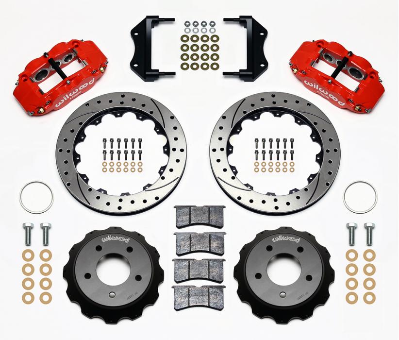 KIT,FRONT,VETTE,85-87,SL6 12.88 X 1.10,DRILLED,RED; RTR:12.88-IN DIA, SRP DRILLED ROTOR, DRILLED & SLOTTED; CLPR:FORGED NARROW SUPERLITE 6R, 6-PISTON, RED POWDER COAT