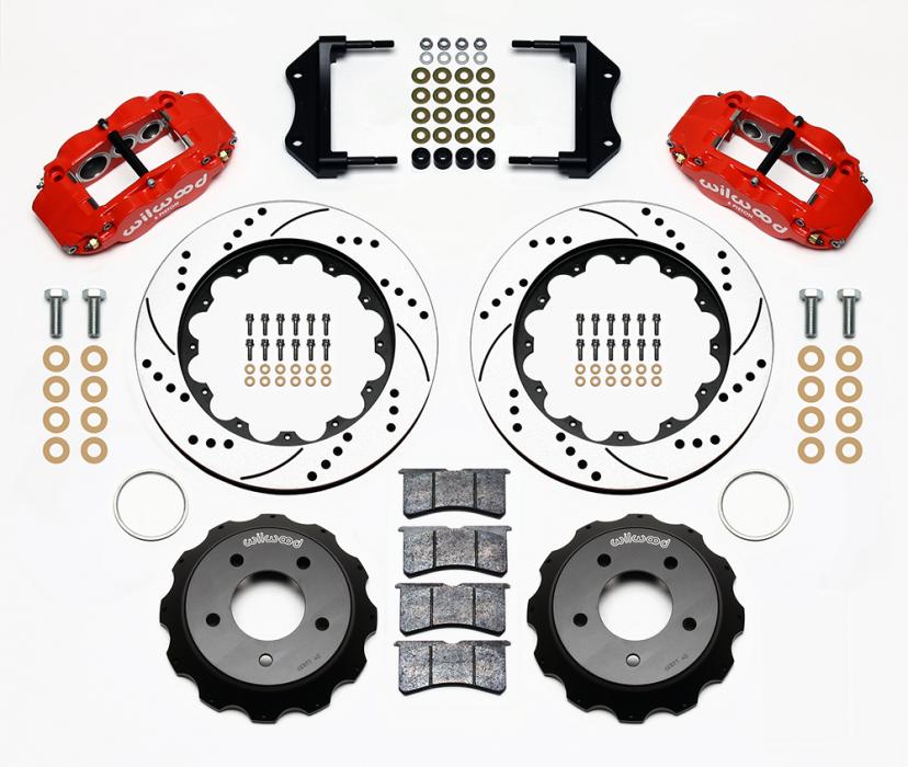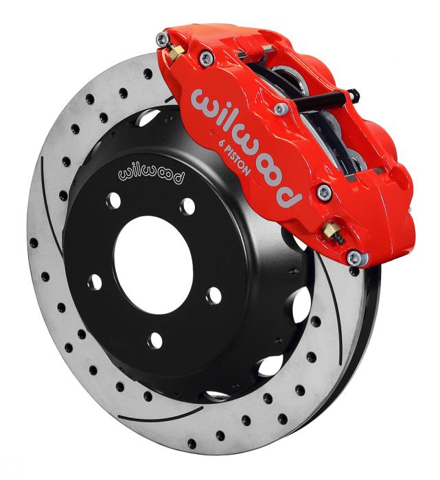 KIT,FRONT,VETTE,85-87,SL6,14.00x1.10 DRILLED,RED; RTR:14.00-IN DIA, SRP DRILLED ROTOR, DRILLED & SLOTTED; CLPR:FORGED NARROW SUPERLITE 6R, 6-PISTON, RED POWDER COAT
