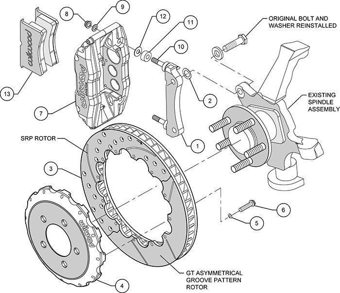The unsurpassed braking capacity of the Forged Narrow Superlite 6R six-piston caliper serves as the base of this group of 13”-14” big rotor kits for these popular late model vehicles. FNSL6R kits are engineered application specific for simplified installation and full compatibility with OE master cylinder output and ABS functions where used. Big brake kits provide increased brake capacity and complimentary style with wheel, tire, and suspension upgrades on show cars and high performance street/track machines. Optional caliper finishes and rotor designs simplify personalizing the style and braking requirements of any application.