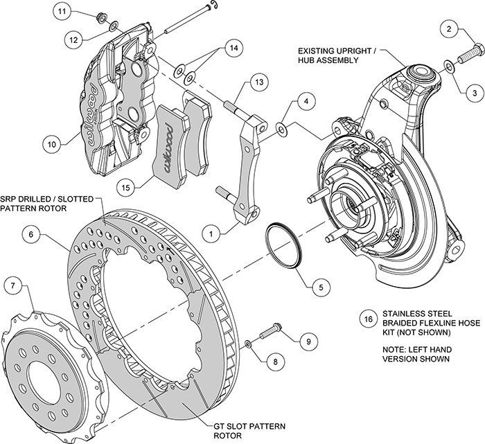 KIT,REAR,C7 VETTE 2014-UP,AERO4,14.25 ROTOR,SRP,W/LINES; RTR:14.25-IN DIA, SRP DRILLED ROTOR, DRILLED & SLOTTED; CLPR:AERO4, 4-PISTON, BLACK POWDER COAT |