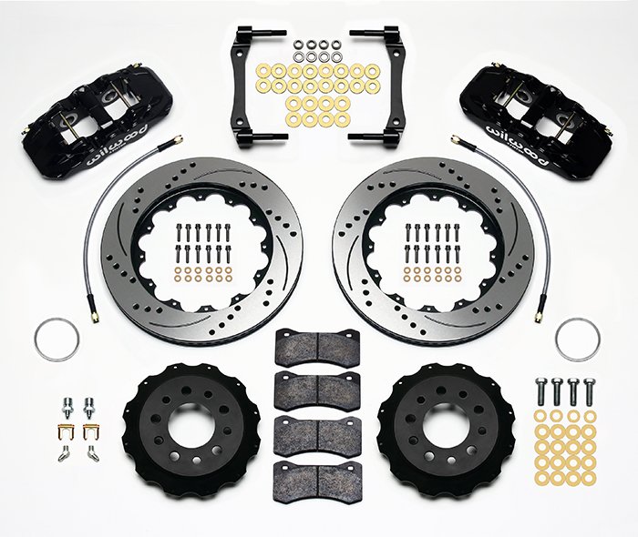 AERO4 Big Brake Rear Axle Kits replace the factory disc brakes and use the OE parking brake assembly as a compliment to front big brake upgrades on late model high performance vehicles. High capacity braking from the W4AR calipers, BP-10 compound pads, and oversized 14.00" rotors are matched to the OE master cylinder output, ABS function, and individual vehicle bias requirements. Enhanced brake performance, increased durability, and high-tech style compliment big wheel, tire, and suspension upgrades on customized vehicles and all others with increased brake requirements.