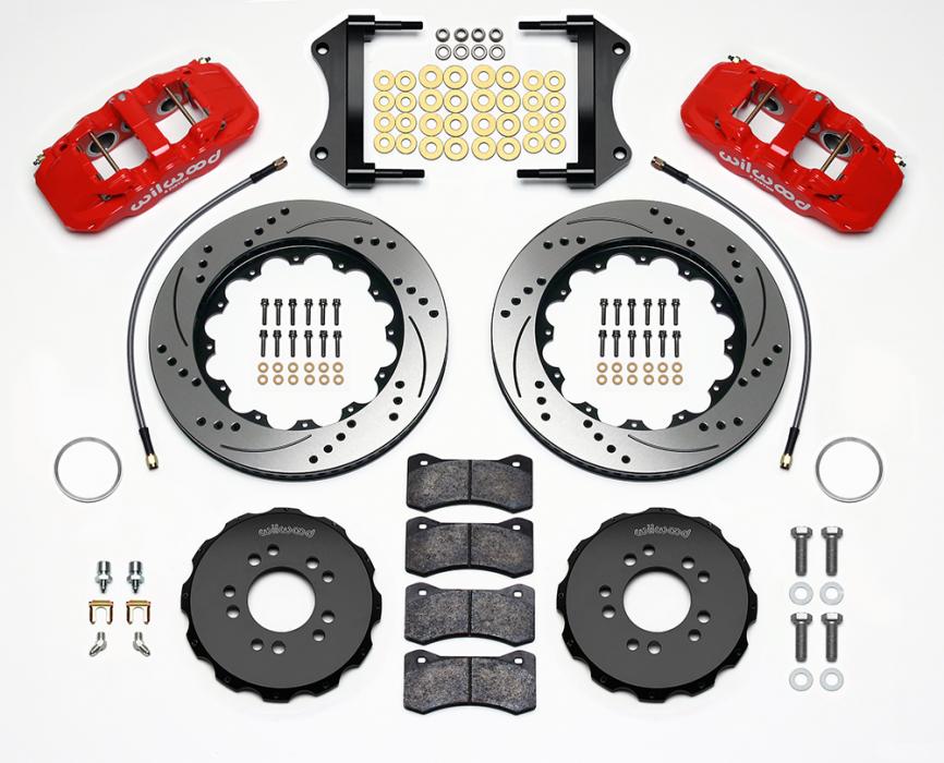 KIT,FRONT,C7 VETTE 2014-UP,AERO6,14.25 ROTOR,SRP,RED,W/LINES; RTR:14.25-IN DIA, SRP DRILLED ROTOR, DRILLED & SLOTTED; CLPR:AERO6, 6-PISTON, RED POWDER COAT |