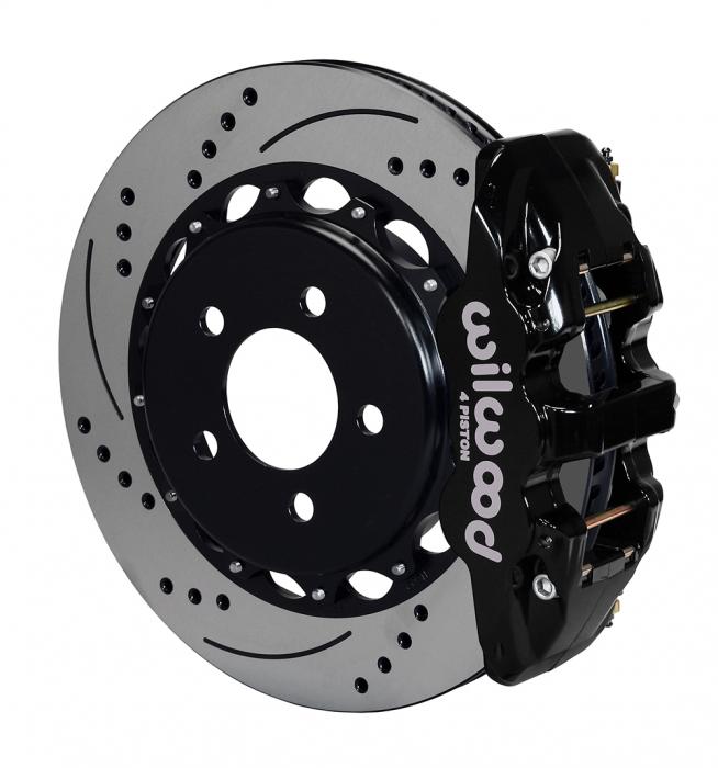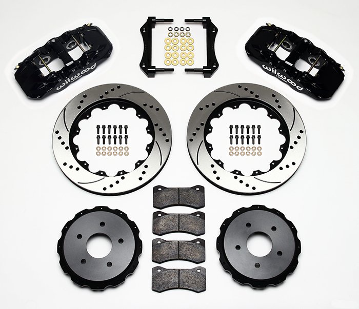 AERO4 Big Brake Rear Axle Kits replace the factory disc brakes and use the OE parking brake assembly as a compliment to front big brake upgrades on late model high performance vehicles. High capacity braking from the W4AR calipers, BP-10 compound pads, and oversized 14.00" rotors are matched to the OE master cylinder output, ABS function, and individual vehicle bias requirements. Enhanced brake performance, increased durability, and high-tech style compliment big wheel, tire, and suspension upgrades on customized vehicles and all others with increased brake requirements.