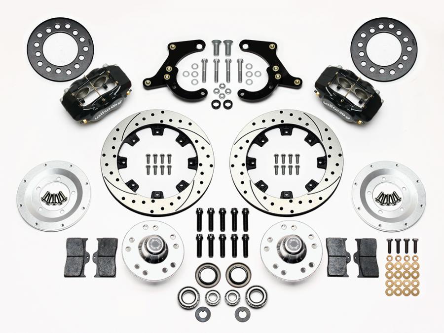FDL Pro-Series Front Hub Kits offer complete disc brake upgrade solutions for traditional non-ABS spindle applications on American muscle cars, vintage rods, and heavy weight drag cars. Based on the venerable forged billet Dynalite caliper, these versatile kits are easily optioned to suit the braking requirements and style preferences for a daily driver, serious competition, or the most discriminating show enthusiast. Most kits require no modifications for installation, and provide plenty of clearance inside popular 15” wheels. FDL Pro-Series kits can be used with either manual or power boost master cylinders.