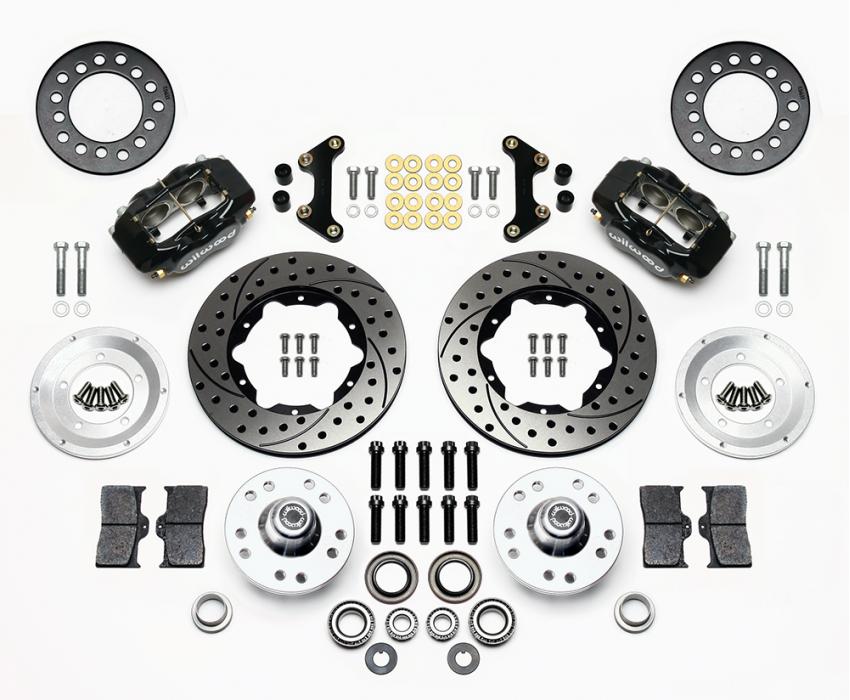 FDL Pro-Series Front Hub Kits offer complete disc brake upgrade solutions for OEM drum brake spindle applications for the popular Chevy 1949-1954 Passenger and 1953-1962 Corvette vehicles. Based on the venerable forged billet Dynalite caliper and 11.00” x .81 rotors, these versatile kits are easily optioned to suit the braking requirements and style preferences for a daily driver, serious competition, or the most discriminating show enthusiast. This kit requires no modifications for installation, and provides plenty of clearance inside most popular 15” wheels. This kit will also work with aftermarket 14” disc brake steel wheels available from other vendors. FDL Pro-Series kits can be used with either manual or power boost master cylinders.