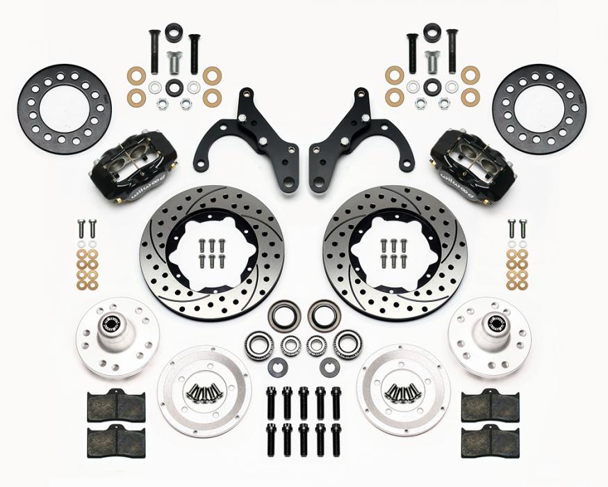 FDL Pro-Series Front Hub Kits offer complete disc brake upgrade solutions for traditional non-ABS spindle applications on American muscle cars, vintage rods, and heavy weight drag cars. Based on the venerable forged billet Dynalite caliper, these versatile kits are easily optioned to suit the braking requirements and style preferences for a daily driver, serious competition, or the most discriminating show enthusiast. Most kits require no modifications for installation, and provide plenty of clearance inside popular 15” wheels. FDL Pro-Series kits can be used with either manual or power boost master cylinders.