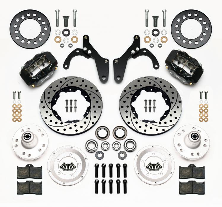 FDL Pro-Series Front Hub Kits offer complete disc brake upgrade solutions for traditional non-ABS spindle applications on American muscle cars, vintage rods, and heavy weight drag cars. Based on the venerable forged billet Dynalite caliper, these versatile kits are easily optioned to suit the braking requirements and style preferences for a daily driver, serious competition, or the most discriminating show enthusiast. Most kits require no modifications for installation, and provide plenty of clearance inside popular 15” wheels. FDL Pro-Series kits can be used with either manual or power boost master cylinders.