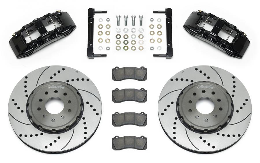 SX6R calipers were designed for the specific purpose of providing high capacity braking with large diameter rotors for extreme duty and race vehicles. It is the largest dual purpose caliper Wilwood has produced, providing big brake performance for show and dual purpose street and track vehicles. Offering additional enhanced braking with wheel and tire upgrades. Kits are fully compatible with OE master cylinder output and ABS function. Directional 72 staggered vane 14.00” to 15.00”rotors provide maximum cooling for sustained high heat durability.