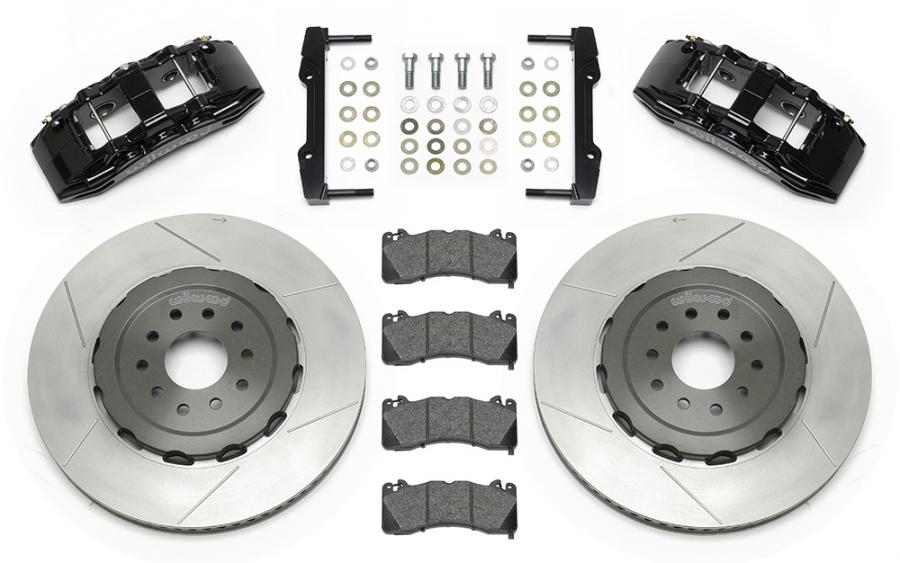 SX6R calipers were designed for the specific purpose of providing high capacity braking with large diameter rotors for extreme duty and race vehicles. It is the largest dual purpose caliper Wilwood has produced, providing big brake performance for show and dual purpose street and track vehicles. Offering additional enhanced braking with wheel and tire upgrades. Kits are fully compatible with OE master cylinder output and ABS function. Directional 72 staggered vane 14.00” to 15.00”rotors provide maximum cooling for sustained high heat durability.