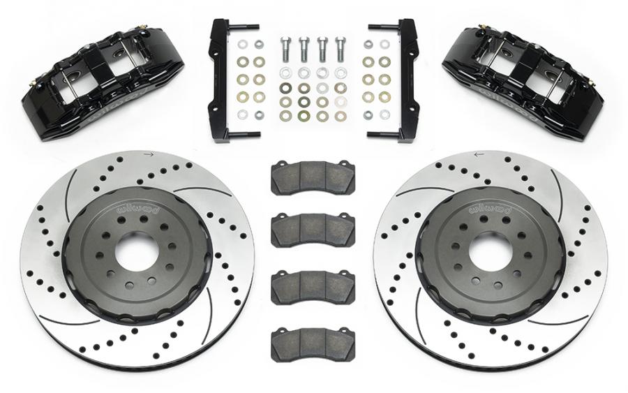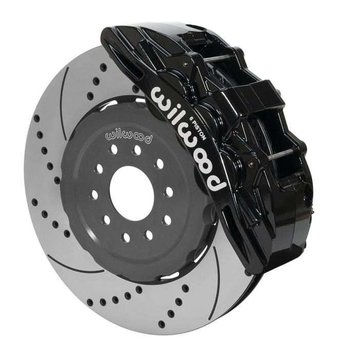 SX6R calipers were designed for the specific purpose of providing high capacity braking with large diameter rotors for extreme duty and race vehicles. It is the largest dual purpose caliper Wilwood has produced, providing big brake performance for show and dual purpose street and track vehicles. Offering additional enhanced braking with wheel and tire upgrades. Kits are fully compatible with OE master cylinder output and ABS function. Directional 72 staggered vane 14.00” to 15.00”rotors provide maximum cooling for sustained high heat durability.