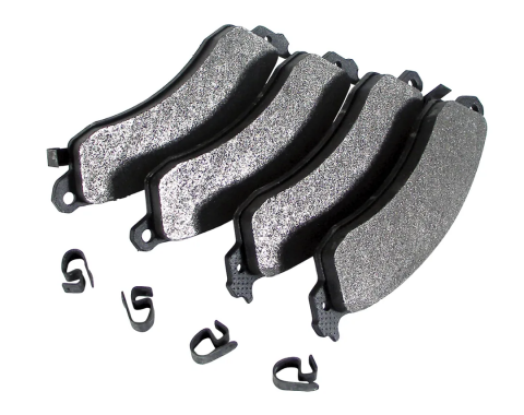 Space age plastic sleeves install without removal of calipers and stop squeaks caused by loose fitting pads. One set outfits 4 calipers.