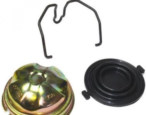 Complete 1964 Corvette Master Cylinder Cap Kit for Power or Non-Power brakes. The cap features the correct factory "Use Delco Brake Fluid" Stamping. Bail has the correct "natural" finish and includes the rubber gasket.BRAKES CYLINDERS…