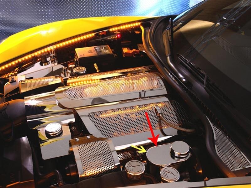 Dress up your Corvette with our Polished - Stainless Steel, Master Cylinder Cover. These trim pieces are designed to fit all 2005-2008 C6 Corvettes on the brake master cylinder and add a clean stylish look to your Corvette engine bay. Compliments our Brake Boost Cover - 043011.
