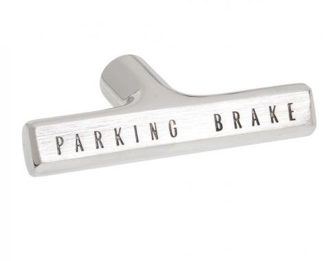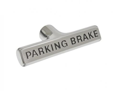 Chrome plated, zinc diecast parking brake pull handle for 1964-1966 Corvettes. Brushed face with black "Parking Brake" embossed letters.…