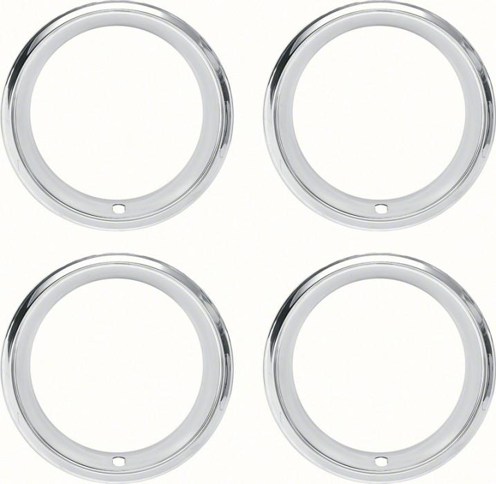 OER® Authorized quality reproduction of the original wheel trim rings designed for use with Rally Wheels. Each trim ring is manufactured in quality stainless steel replicating the original in fitment. Trim rings are 14" x 7" and feature a 2-7/8" deep step lip. Will replace the old or damaged originals and fit most 1968-81 reproduction Rally wheels. 4 piece set.