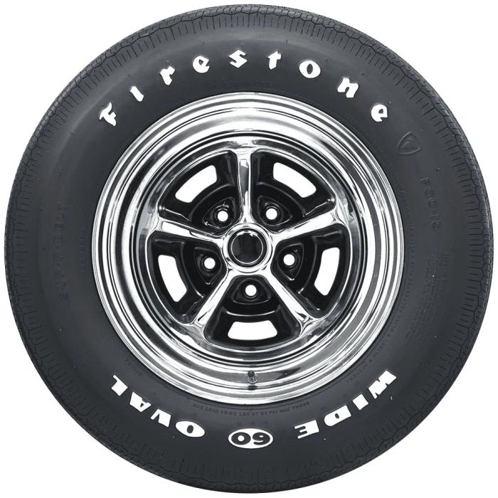 Nothing says muscle car quite like a classic set of raised white letter tires, and Firestone Wide Oval tires were original equipment for many muscle and pony cars from 1967-74. A bold "Wide Oval" logo on the sidewall instantly takes you back to the sixties when big engines and four speeds ruled the streets. Muscle cars are getting big money at auctions and the buyers love a restored-to-stock or Day Two muscle car more than ever. Firestone Wide Oval tires are made in the original molds in the USA with modern materials and technology and are backed by our exclusive Life of the Tread warranty.