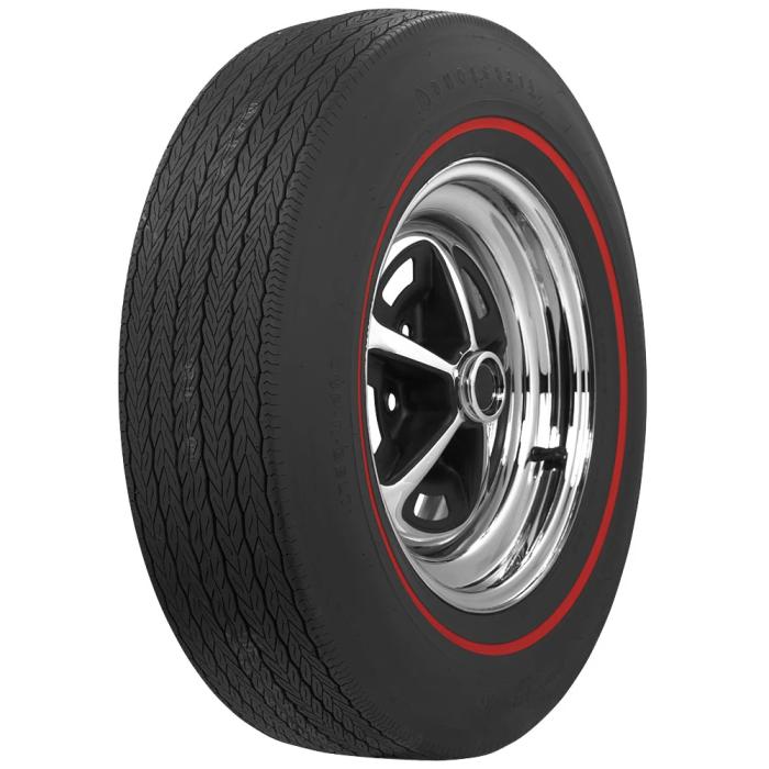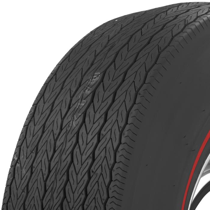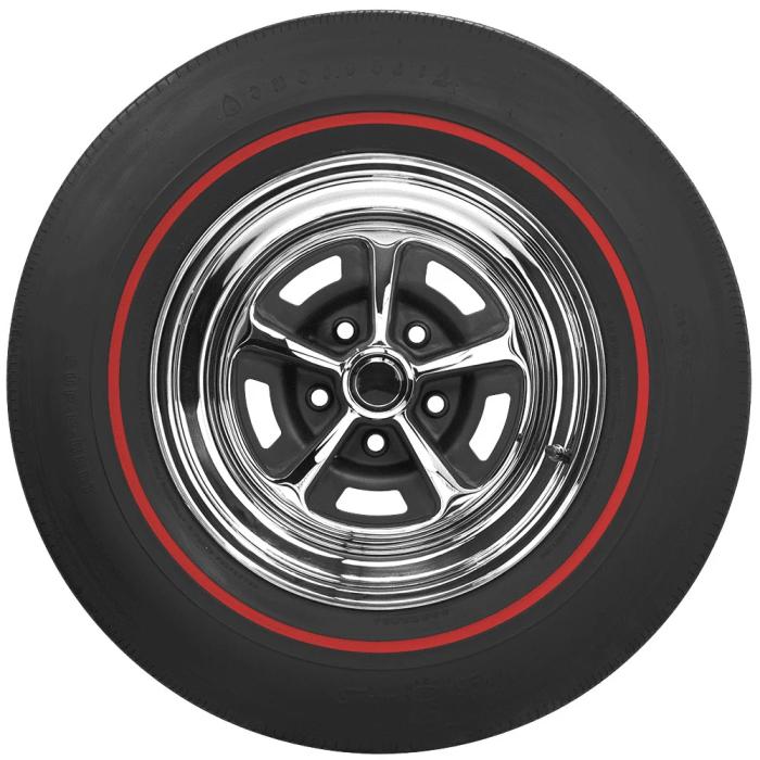 This product features a genuine redline sidewall style, sometimes known as a red stripe, due to the thin 3/8-inch strip rubber. This means that the red rubber is added directly to the tire sidewall during initial construction of the carcass, resulting in a truly integrated, high-quality product after vulcanization. Redline tires hit the American automobile market in 1964 with the introduction of the Pontiac GTO and remained a popular muscle car tire until around 1970. Dual redline tires (two red stripes) were an option on Ford Mustangs, and are now reproduced in original bias ply, bias look radial as well as radial construction. Choose the redline that best fits your application.