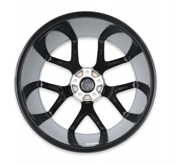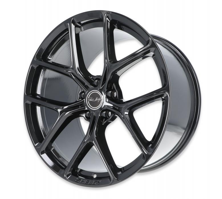 20x11", flow-formed Y spoke design emulating the Mustang Performance Pack 2 upgraded wheels. Engraved with the Shelby logo on the lip. Also available in Gunmetal and Hyper Silver, as well as a 20x9.5" for the front (if you choose to run staggered). They are compatible with most late-model, big brake systems. Offset 50; Backspace 7.94"; Bolt Pattern 5 x 114.3