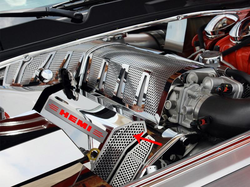 Challenger/Charger/Magnum/300 SRT 8 Fuel Rail Covers Polished/Perforated "HEMI" Illuminated 2008-2011 153035F: