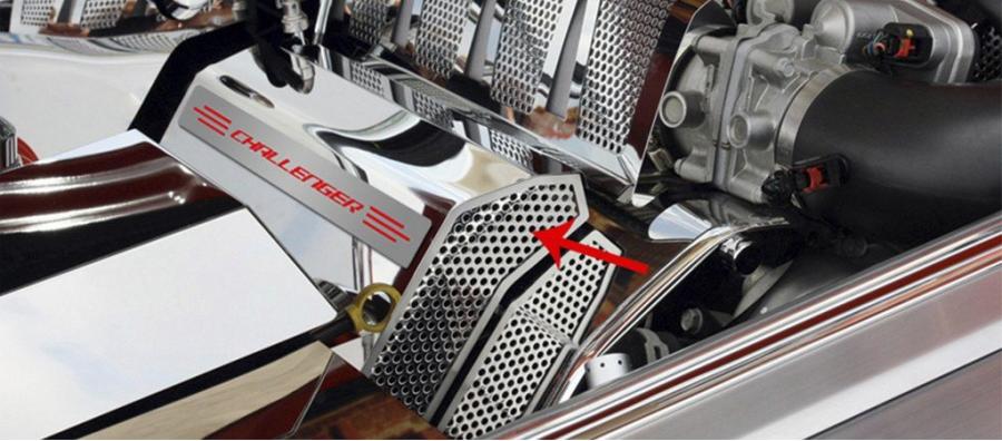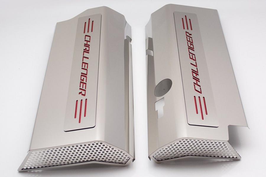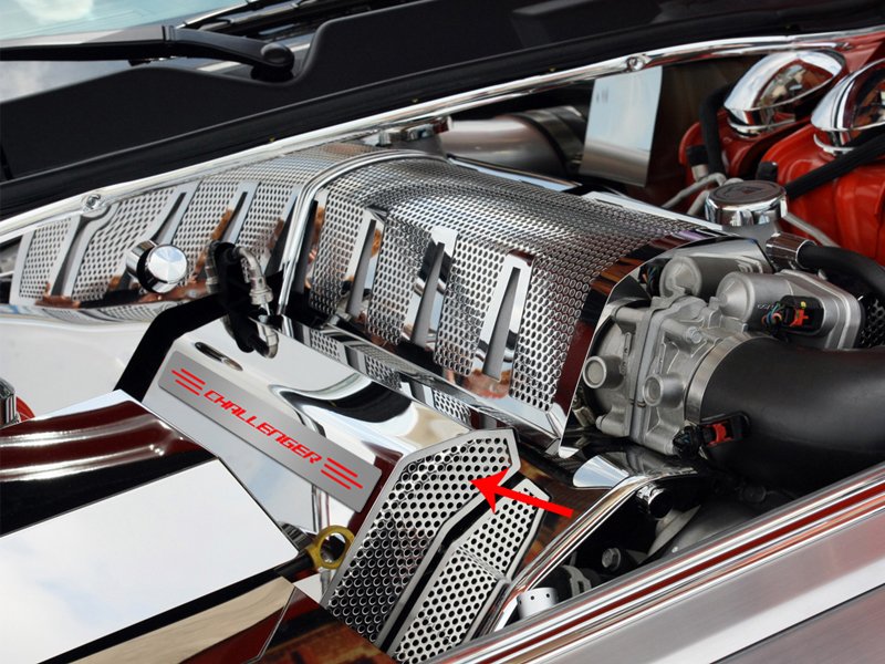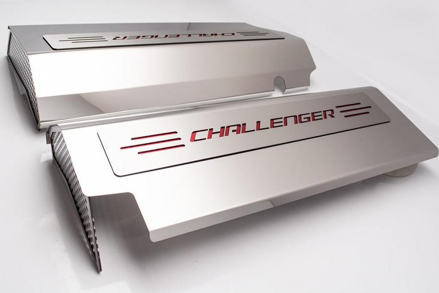 Illuminated Challenger/Charger/Magnum/300 SRT 8 Fuel Rail Covers handcrafted from solid stainless steel, with Yellow LED ILLUMINATION (More color options available). For After Market Intake System Only.