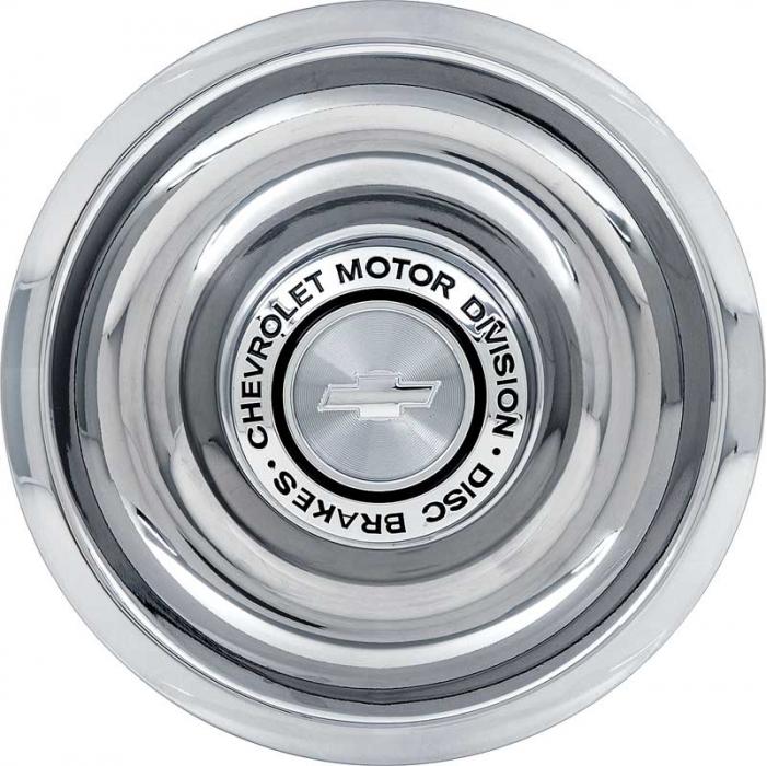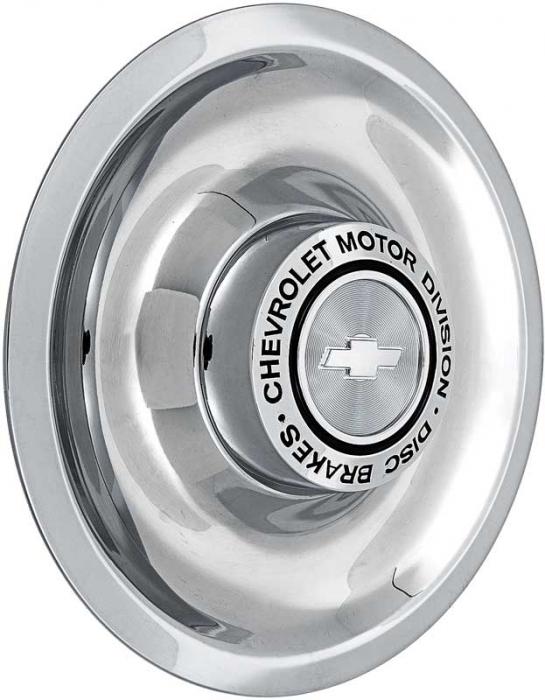 For models with disc brakes, this stainless steel Rally wheel center cap is a wonderful addition for your vehicle. The center cap features the words "Chevrolet Motor Division Disc Brakes" and a Bow Tie in the center. Sold individually.