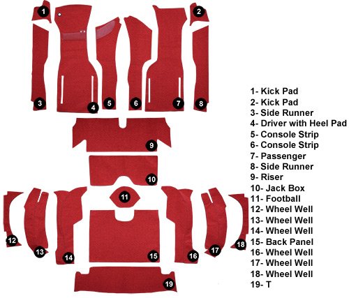 Auto Custom Carpets Original Equipment Replacement Carpet Kits are crafted from heavy duty materials designed to last for many years of extensive use. These long-wearing carpets will surely complement your vehicle's interior with a wide variety of colors to choose from so you can get a perfect match for your vehicle’s interior. Known worldwide as a top automotive replacement carpet manufacturer, Auto Custom Carpets continues to provide excellent products to its customers. Auto Custom Carpets have always been made in America and now operates 3 factories, including making moulded carpets in the same factory where moulded carpets were pioneered in 1958. Auto Custom Carpets simply offers the widest selection of replacement automotive carpet in the industry today and is committed to manufacturing all products in USA.