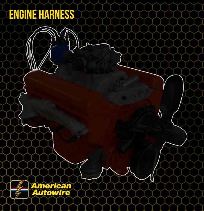 Engine harness design varied significantly from year to year, but most will contain wiring for the ignition system, starter, heater blower, and temperature/oil pressure sender wires if applicable. Some vehicles used a capillary tube to provide an oil pressure reading, so these will not be included in a wiring harness. On vehicles with ignition points, the circuit feeding the ignition coil was designed with some resistance to extend the life of the ignition point set. Modern electronic ignition systems or High Energy ignition (HEI) systems do not require resistance in the circuit, so it is recommended that a harness modified for HEI be ordered if the ignition system has been upgraded. In most cases these harnesses are available in our catalog and feature unique part numbers.