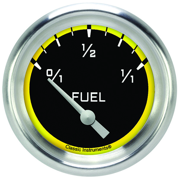 Classic Instruments Autocross Yellow 2 5/8" Fuel Gauge, 0-30 Ohm AX214YAPF: