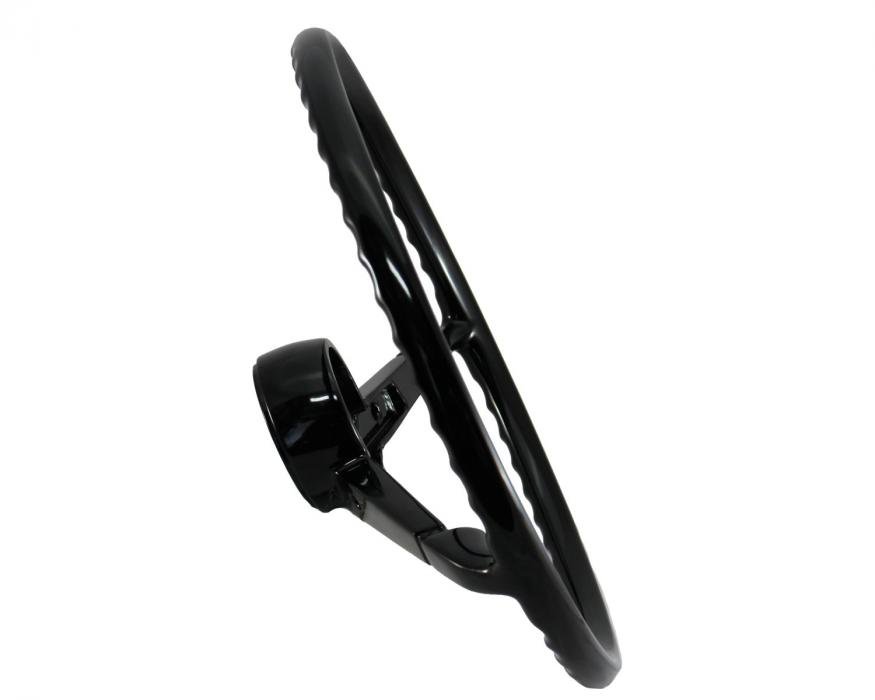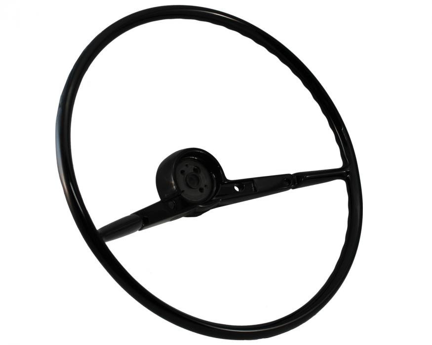 This correct reproduction steering wheel features 18 in diameter. It has high gloss finish and offers simple, direct bolt on installation.