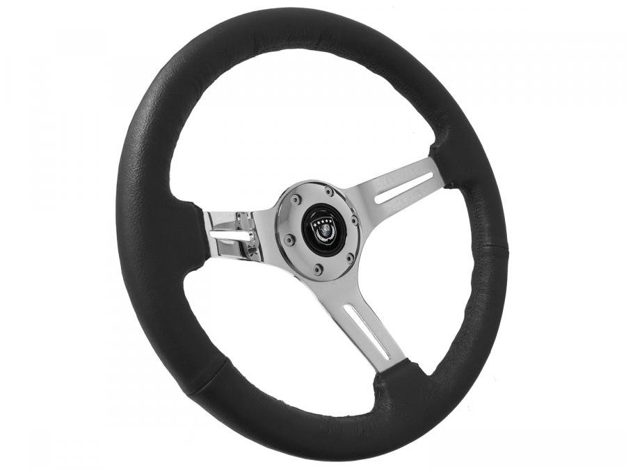 S6 Sport Wood series come in premium black leather with high quality chrome center finish and slotted spoke design. They feature a 14 in. diameter with a 2.5 in. depth for turn signal clearance.
