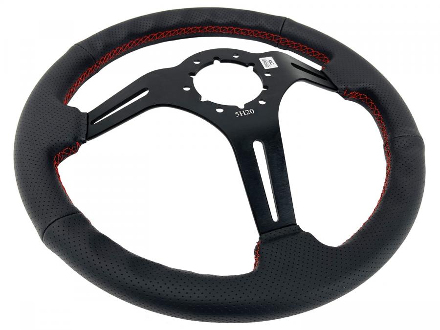 The VSW S6 Sport Perforated Leather Steering Wheel features a Fully Wrapped Genuine Black Perforated Leather Grip High Quality Black Aluminum Center Finish, 14 in. Steering Wheel Diameter, 2.5 in. Depth for turn signal clearance, 70mm PCD 6-Bolt Mounting Pattern, Pairs perfectly with any VSW S6 Hub Adapter, S6 Horn Button & VSW OE Retro Series Horn Caps.