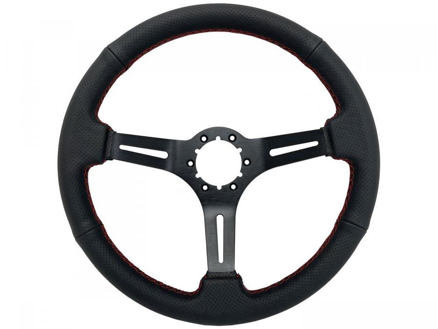 • Fully Wrapped Black Genuine Perforated Leather Rim