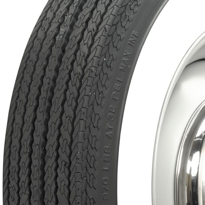 This product features a genuine wide whitewall sidewall style. This means that the bright white rubber is added directly to the tire sidewall during initial construction of the carcass, resulting in a truly integrated, high-quality product after vulcanization. Wide whitewall tires were a very popular choice from the 1930's through the end of the 1950's, and were eventually phased out of mainstream production by 1962. Originally, wide whitewall tires featured a bias ply construction, Coker Tire offers these tires in both original style bias ply and modern radial construction.