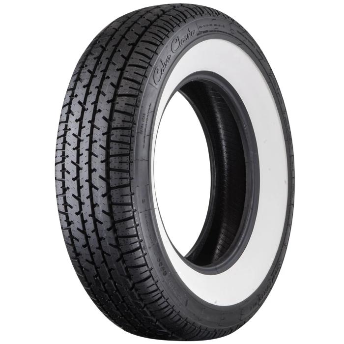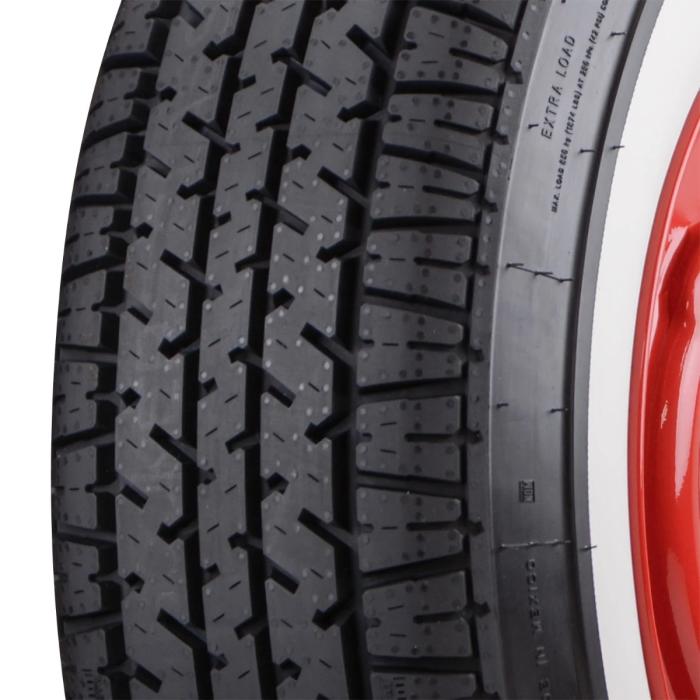 The Coker Classic Star Series 215/75R15 whitewall tire is a modern radial tire with best-in-class speed, load and traction ratings. This tire features a 2.5-inch whitewall, which is built into the tire from day one for a long-lasting tire that offers the perfect look for your classic car. The wide whitewall fits many American classic cars from 1961 and earlier, and the 215/75R15 sizing is a direct replacement for 710-15 and G78-15 bias ply tires. Coker Classic Star Series tires feature a 480AA UTQG rating, giving them excellent treadwear, traction and temperature control. Another best-in-class rating is the T speed rating (118mph), as well as XL load rating, thanks to a reinforced sidewall. The low-noise tread looks and performs nicely, and this tire is DOT approved and E-marked for the European market. You won't find a better whitewall radial tire on the market, you have our word on it!