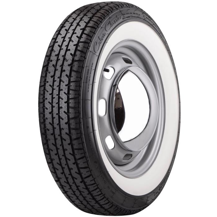 The Coker Classic Star Series 185/80R13 whitewall tire is a modern radial tire with best-in-class speed, load and traction ratings. This tire features a 2.875-inch whitewall, which is built into the tire from day one for a long-lasting tire that offers the perfect look for your classic car. The wide whitewall fits many American compact cars from 1961 and earlier, and the 185/80R13 sizing is a direct replacement for 725-13 and also fits on cars that came with 650-13 bias ply tires. This includes Chevy Corvair, Ford Falcon and many European cars that came from the factory with 13-inch wheels. Coker Classic Star Series tires feature a 480AA UTQG rating, giving them excellent treadwear, traction and temperature control. Another best-in-class rating is the T speed rating (118mph), as well as XL load rating, thanks to a reinforced sidewall. The low-noise tread looks and performs nicely, and this tire is DOT approved and E-marked for the European market. You won't find a better whitewall radial tire on the market, you have our word on it!