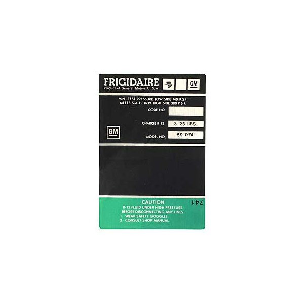 This Corvette reproduction air conditioning compressor decal has been manufactured to original factory specifications using today's modern manufacturing techniques. You will find the fit, finish and function will work superbly for your restoration.